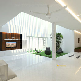 A family home that was carefully planned around a beautiful old Koovalam tree that existed on site. This modern abode situated in Trivandrum houses 6 bedrooms, 8+ bathrooms. Large double storey windows and a skylit courtyard that keeps the interiors always lit and thereby maximising the feeling of spaciousness.
